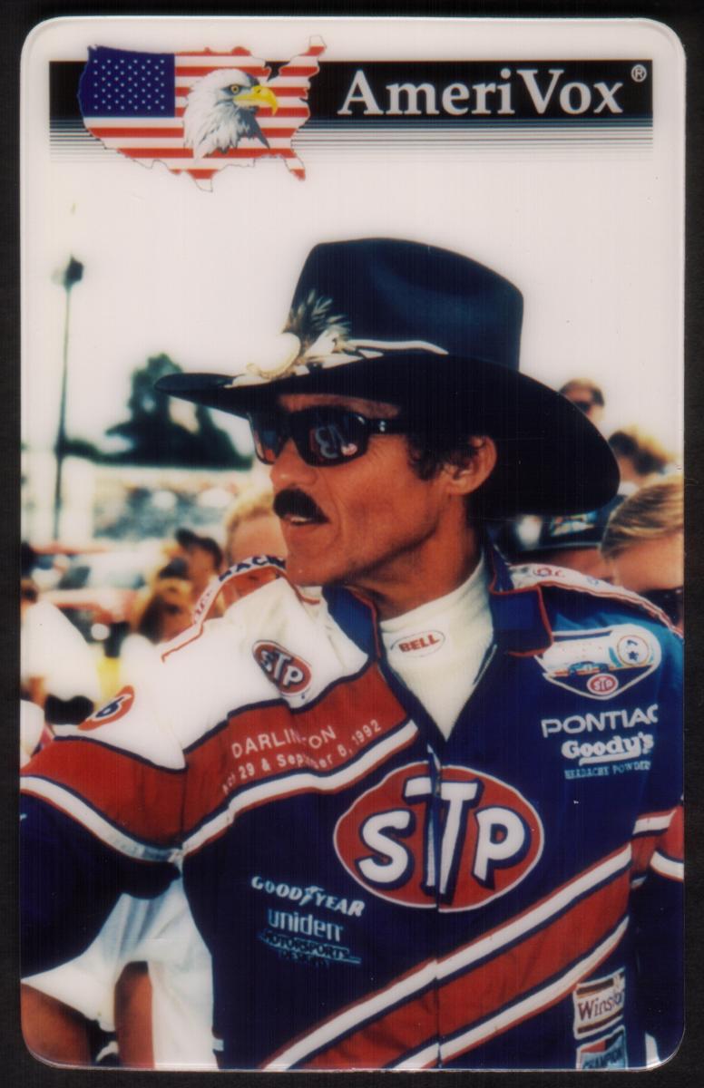 This collectible does not carry a denomination, which implies it is designed for collecting rather than transactional use. The card was produced by AmeriVox, a company known for issuing collectible phone cards during the 1990s and early 2000s. The absence of any numeric value on the card, combined with the detailed depiction of Richard Petty in his racing attire, reinforces its status as a collector’s item commemorating a prominent NASCAR personality and his affiliation with iconic automotive sponsors.