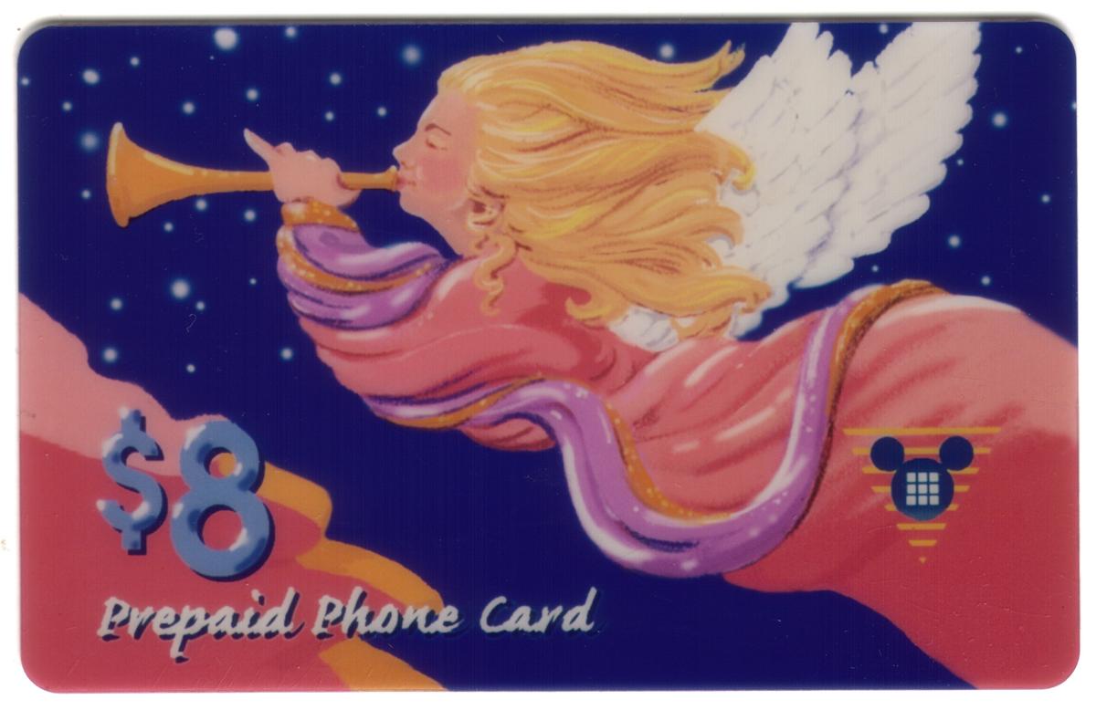 Vintage 1994 prepaid card featuring a festive angel blowing a horn against a starry night, with Disney branding and holiday-themed artwork. |