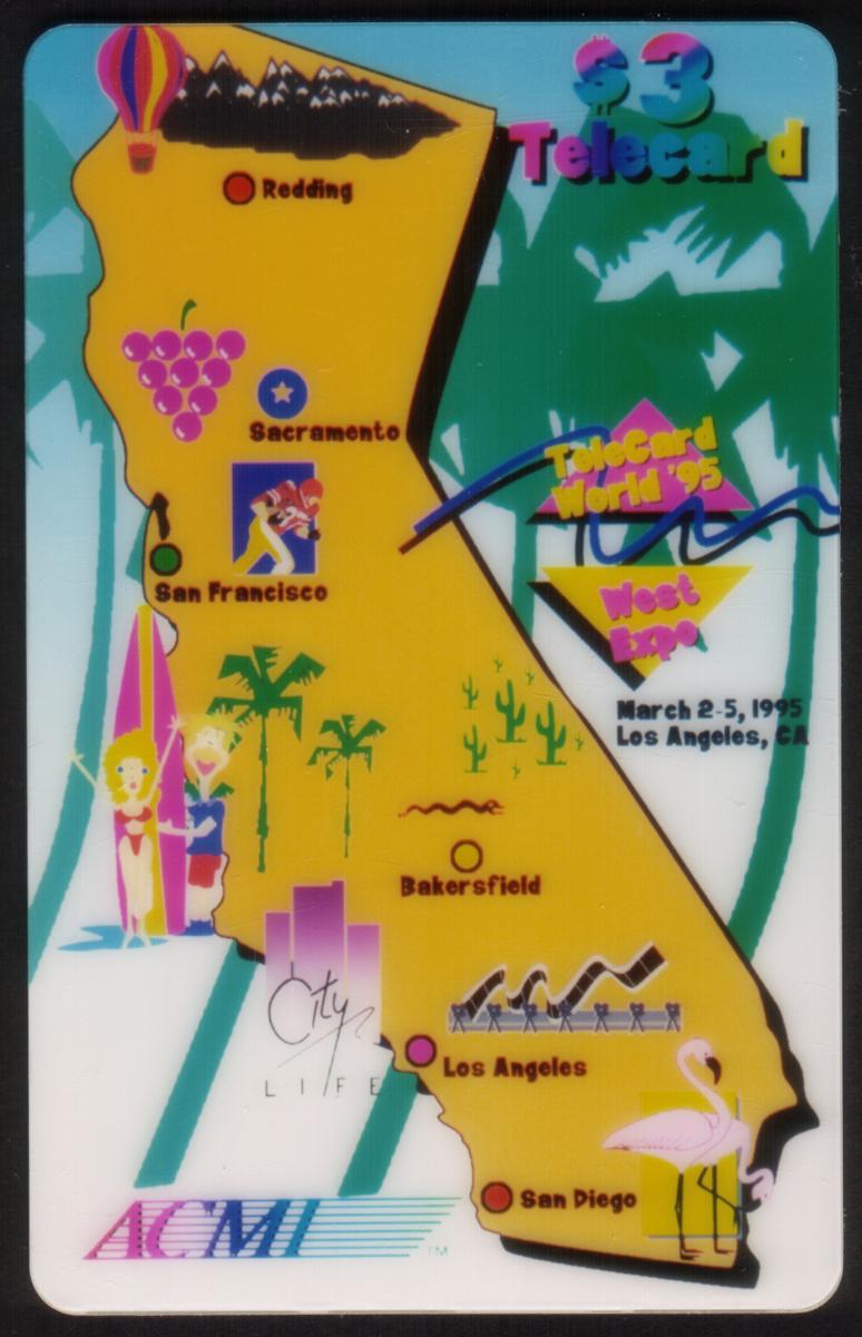 $3. TeleCard World West Expo '95 (Los Angeles California) 03/95 Map
