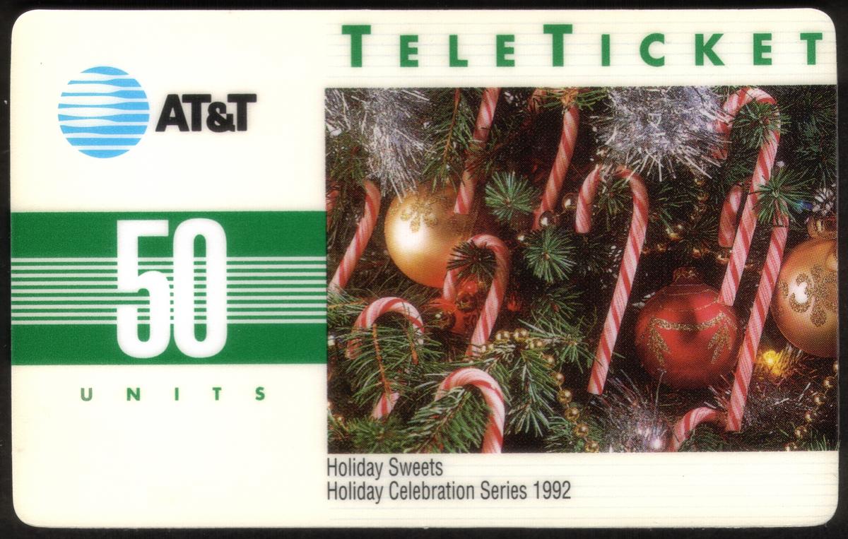 1992 AT&T Holiday Celebration Series phone card featuring Christmas sweets, festive imagery, and nostalgic design, ideal for collectors and holiday enthusiasts.