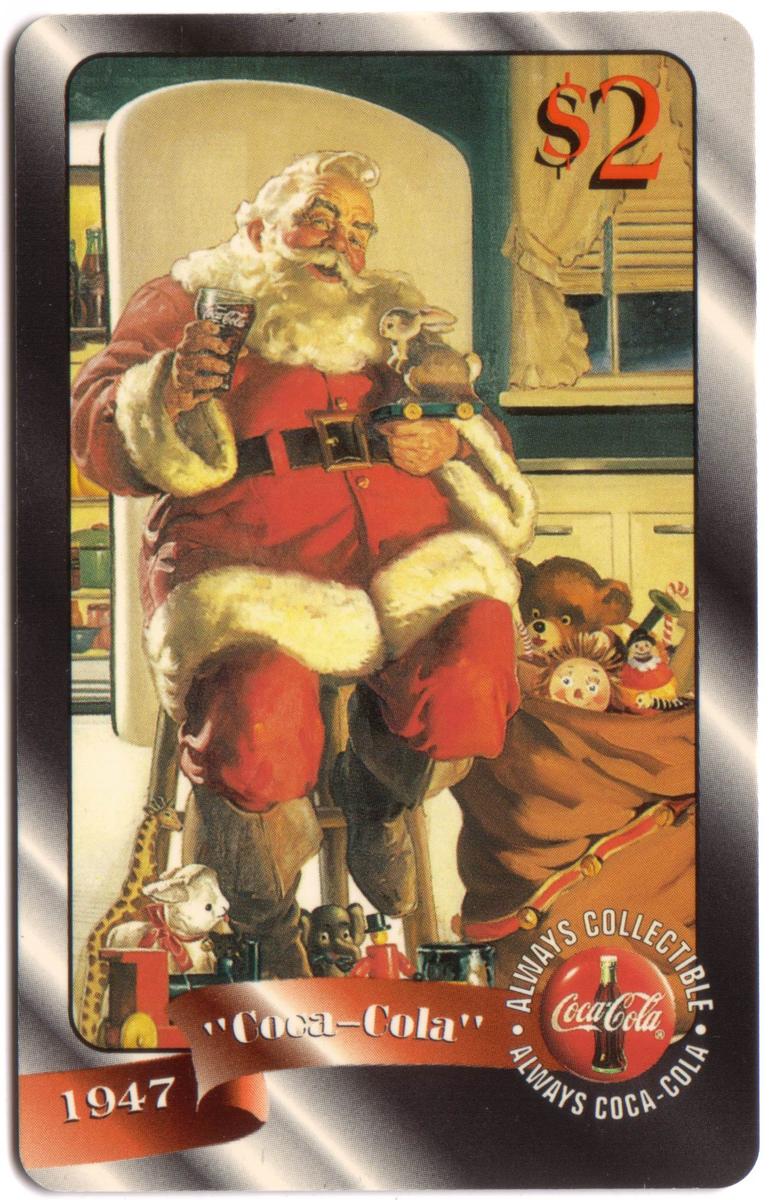 Coca-Cola '96 $2. Santa At Refrigerator (1947) Coke Card #20 of 48
