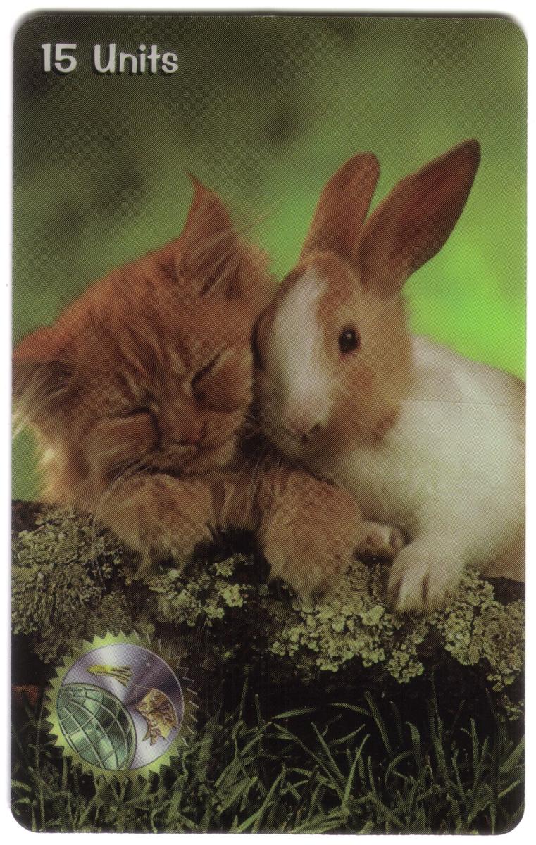 This phone card is part of a series featuring animals, particularly cats, kittens, rabbits, and wildlife themes. The depiction reflects the comfort and companionship between pets, making it an appealing collectible for enthusiasts interested in animals and domestic pets. The card’s design highlights both the cat and the bunny in a natural, intimate moment, underscoring the warmth of this unique animal friendship.