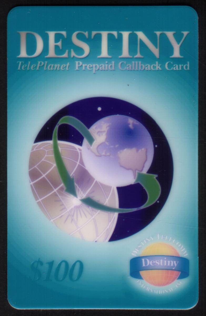 $100. Destiny TelePlanet Prepaid Callback Card (Shows Earth) SPECIMEN