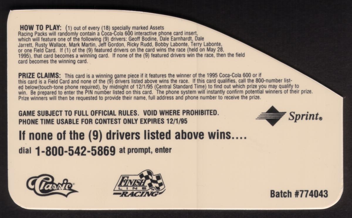 This card commemorates the Coca-Cola 600, an iconic NASCAR event, and is part of a collectible series related to auto racing and automotive sports. It combines elements of racing branding and sponsorship, highlighting the excitement and competitive spirit of the race.