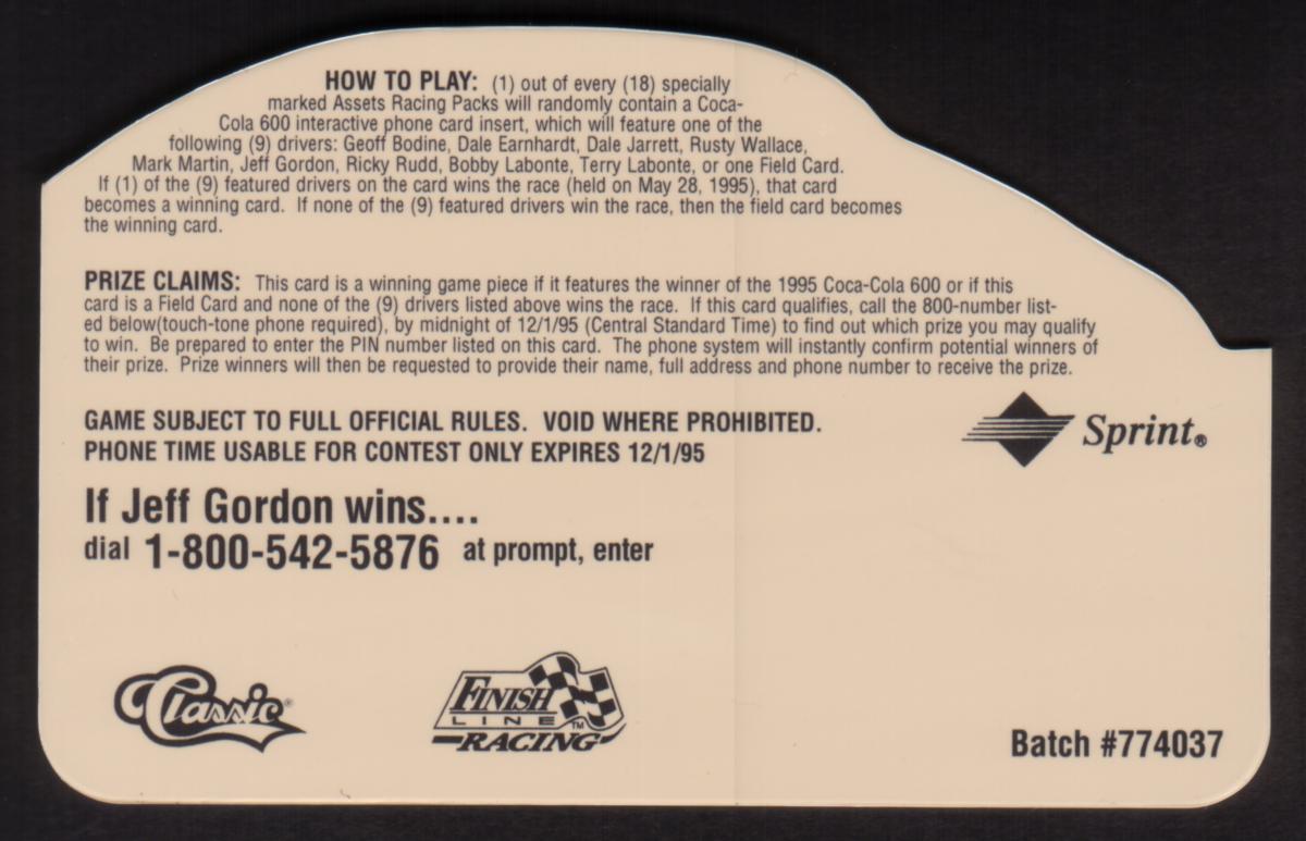 Jeff Gordon Coca-Cola Interactive Die-Cut Racing (Coke 600) SPECIMEN