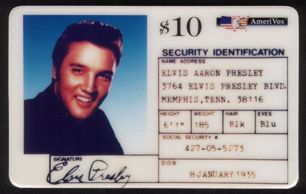 $10. Elvis Presley Identification Security Card ID: With Scratch-Off
