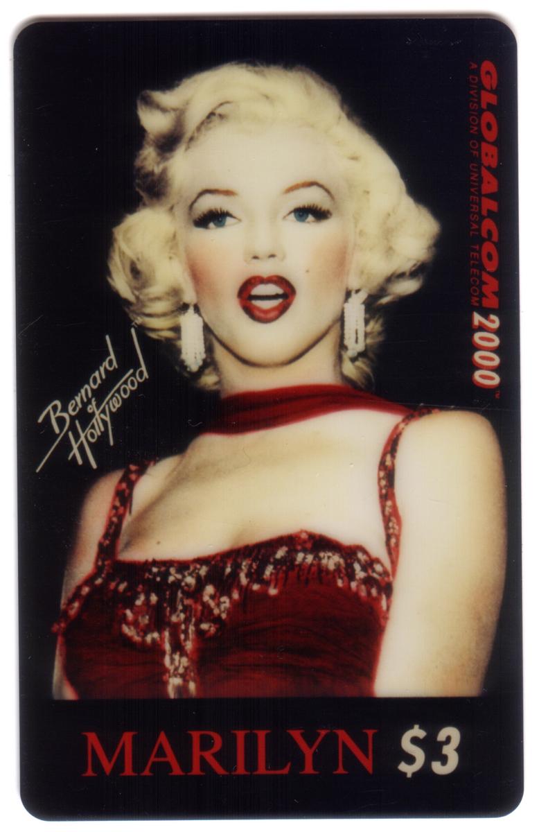 The card was issued by Globalcom in the year 2000. It highlights Marilyn Monroe, whose birth name was Norma Jeane, a well-known figure in films and entertainment. The design pays homage to her enduring legacy as a famous woman in the movie industry. The layout is clean, with the image of Marilyn Monroe centered prominently against a smooth background, bringing attention to the elegance of her red gown and poised expression.
