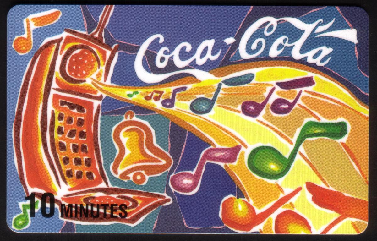 Coca-Cola, Coca Cola, Coke, musical notes, bells, phones on phonecards, promotional, Datatel International