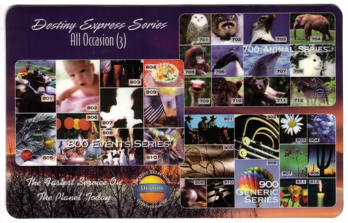 Part of the Destiny Express Series, featuring animal, event, and generic themes with colorful mini-images on a sunset background, emphasizing speed and artistry. |