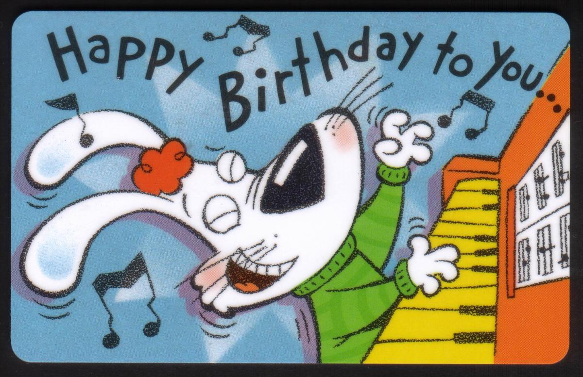 Keywords: Greeting card, rabbits, bunnies, bunny rabbits, art - cartoons, pianos, music, musical, Happy Birthday, calling, birthday cards, birthdays, musical notes, musical clefs, 94224, 94221, Hallmark (Sprint)