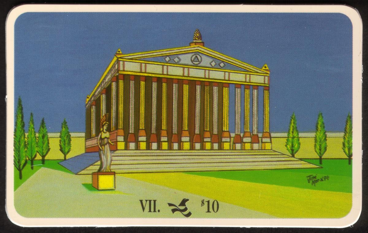 Additional textual elements include the denomination “VII $10” and “AmCall” branding, indicating the collectible nature of the card. The card’s style and presentation reflect a tribute to ancient architecture and artistic heritage, suitable for those interested in classical history and legendary monuments.