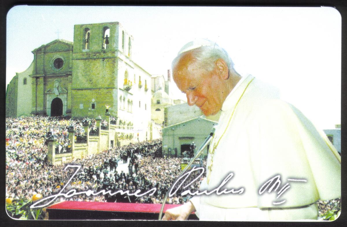 This collectible phone card was issued by Siesta Telecom and is connected to the broader context of religions and religious symbols within the Catholic Church. The card’s design integrates both the sacred imagery of Pope John Paul II and one of Rome’s most famous landmarks, underscoring the enduring connection between the Catholic Church and its historic roots in the city of Rome.