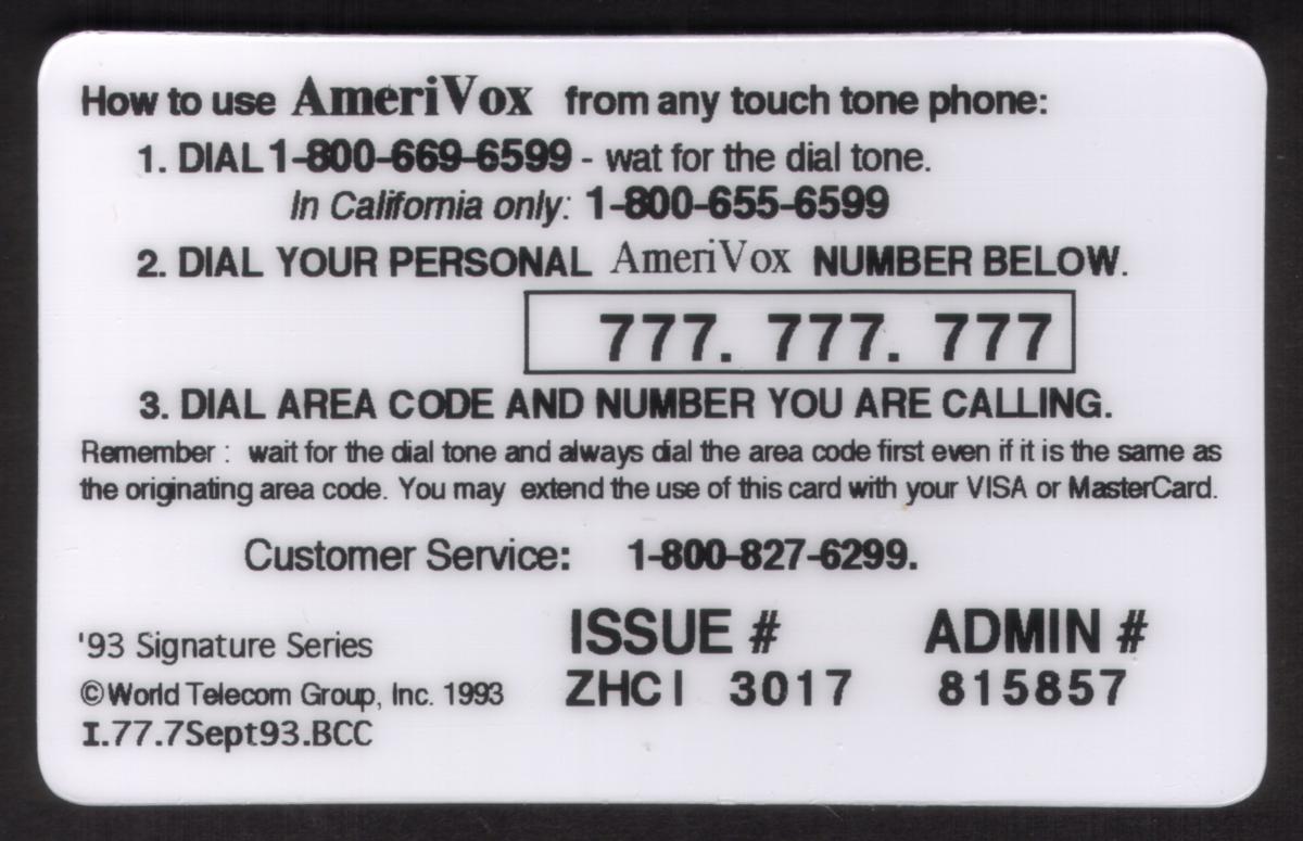 Since we have the world's largest inventory of USA phonecards for collectors, you will not necessarily receive the identical serial/batch/PIN number that we have scanned/pictured.