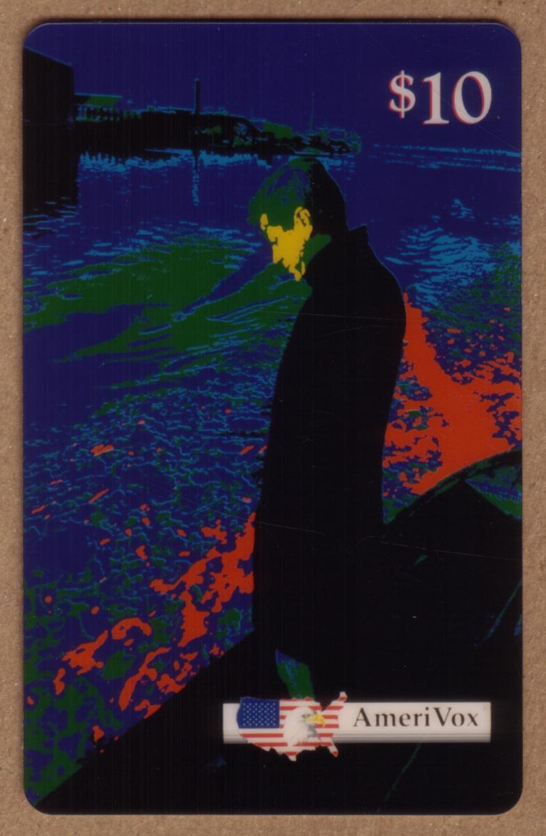 The card includes the AmeriVox logo positioned in the upper left corner, linking it to the issuing company. Additional text appears along the bottom edge, reinforcing the focus on JFK as a famous political figure and civil rights icon. This collectible phone card combines political history and American presidential imagery, celebrating the enduring significance of John F. Kennedy.