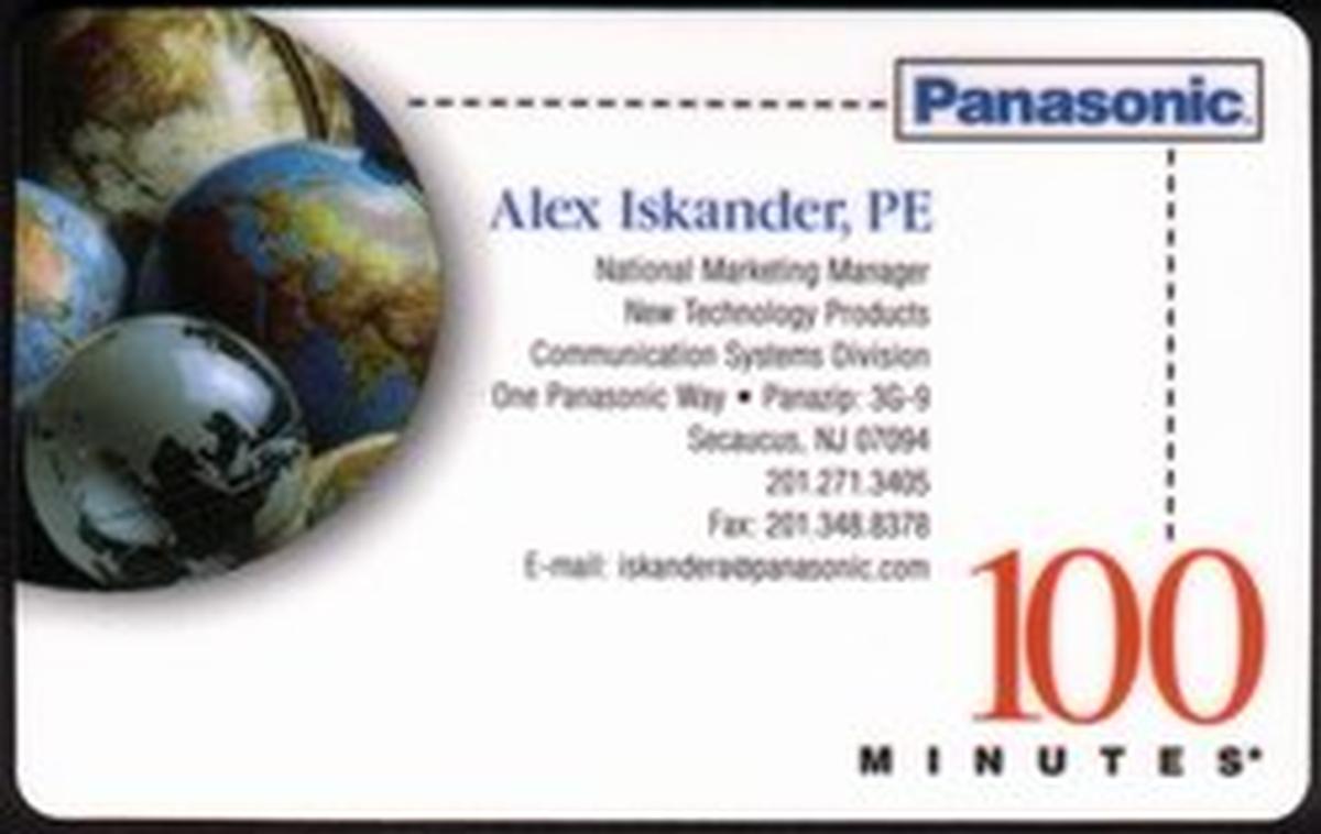 Overall, the design focuses on global communication and new technology products under Panasonic’s World Globes branding, with clear emphasis on the professional role of Alex Iskander and the AT&T partnership.