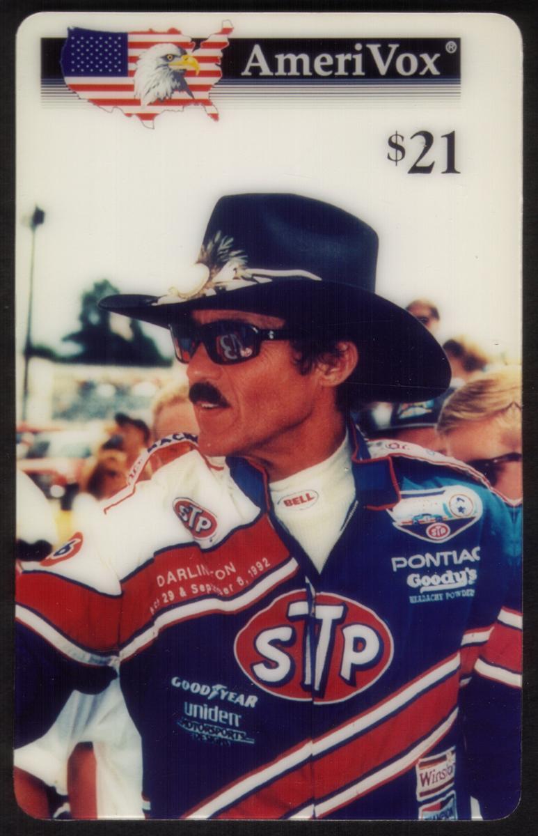 This is a specimen card issued by AmeriVox and is valued at $21. The card’s clean, sharp image and use of official logos make it a notable collectible for enthusiasts of auto racing and Richard Petty memorabilia.