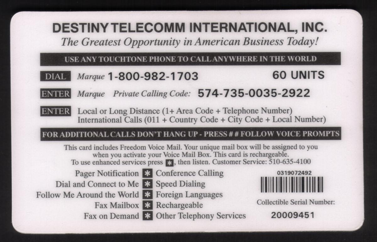 Since we have the world's largest inventory of USA phonecards for collectors, you will not necessarily receive the identical serial/batch/PIN number that we have scanned/pictured.