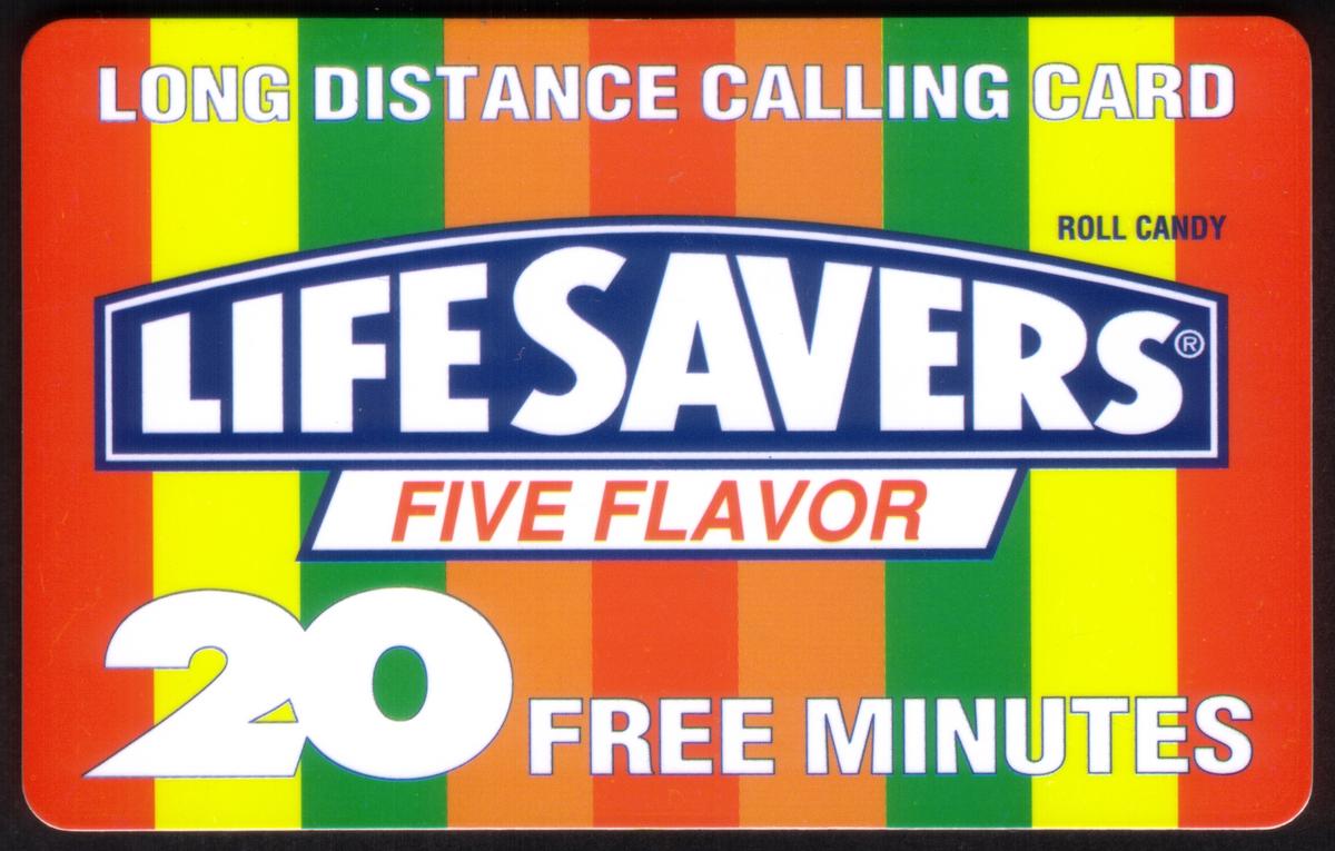 The card is promotional in nature, highlighting LifeSavers candies as part of its theme. The arrangement suggests a connection between sweets and communication or phone services, tying the LifeSavers candy product with the telecom industry. The overall layout combines branding for candies and a telecom brand, WorldCom, which appears directly on the card along with its logo.