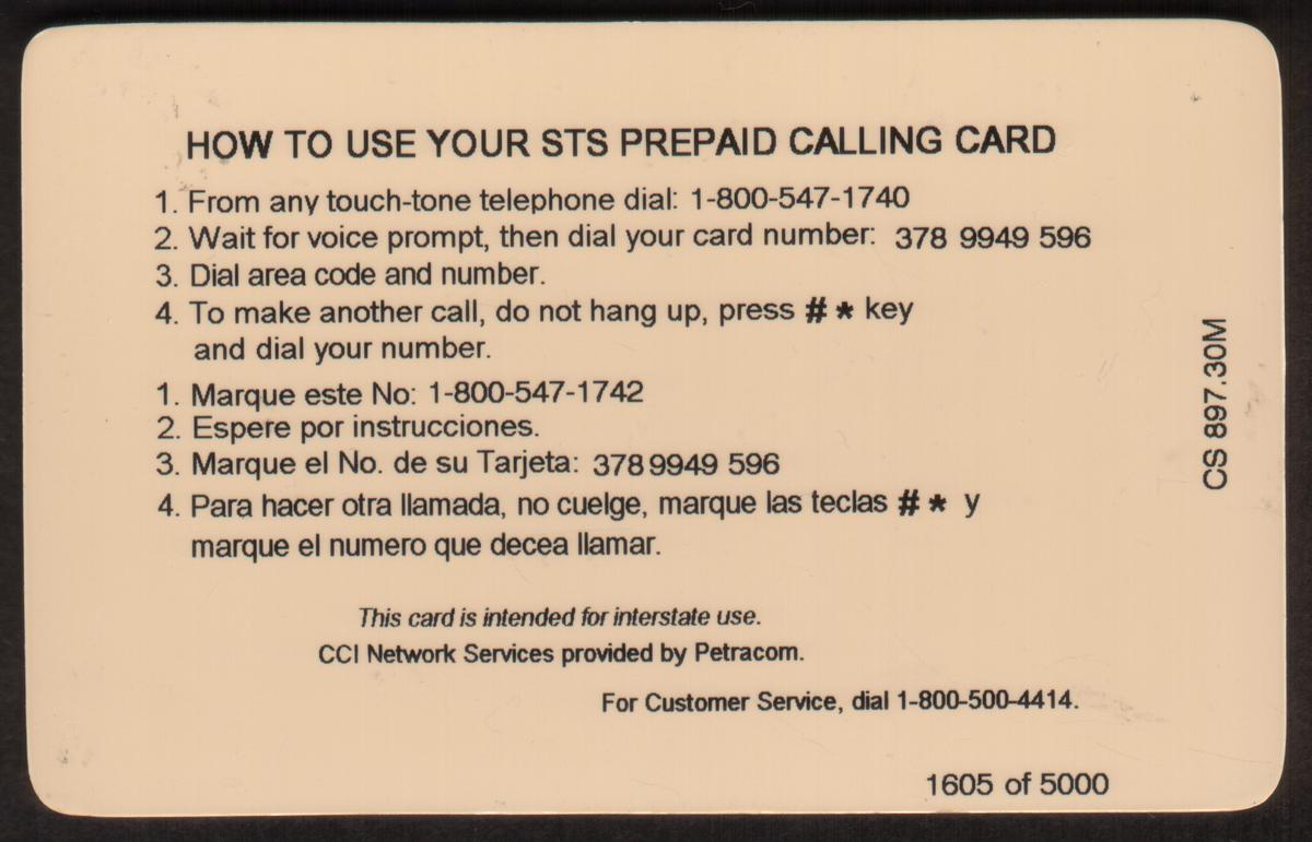 Since we have the world's largest inventory of USA phonecards for collectors, you will not necessarily receive the identical serial/batch/PIN number that we have scanned/pictured.