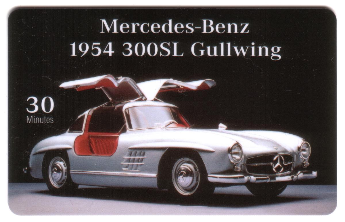 This collectible phone card connects the theme of automotive excellence with telecommunications, positioning itself as a promotional item celebrating the historic Mercedes-Benz 300SL Gullwing. It appeals to both car enthusiasts and collectors of branded phone cards, melding iconic automotive imagery with corporate branding from AT&T.