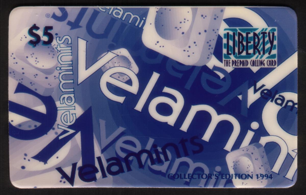 This collectible promotional card features the Velamints brand, known for breath mints and candy, prominently displayed in the center area. The card highlights a corporate product promotion linked to Quest Group International. The design includes a bold red circle with the text "Velamints Promo" under it, emphasizing the promotional nature of the item.