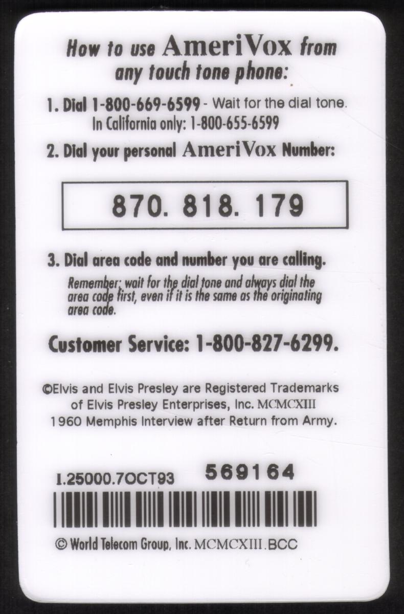 This collectible phone card was issued in October 1993. The card connects to American entertainment history, highlighting Elvis Presley’s enduring legacy as a singer, musician, and cultural icon.