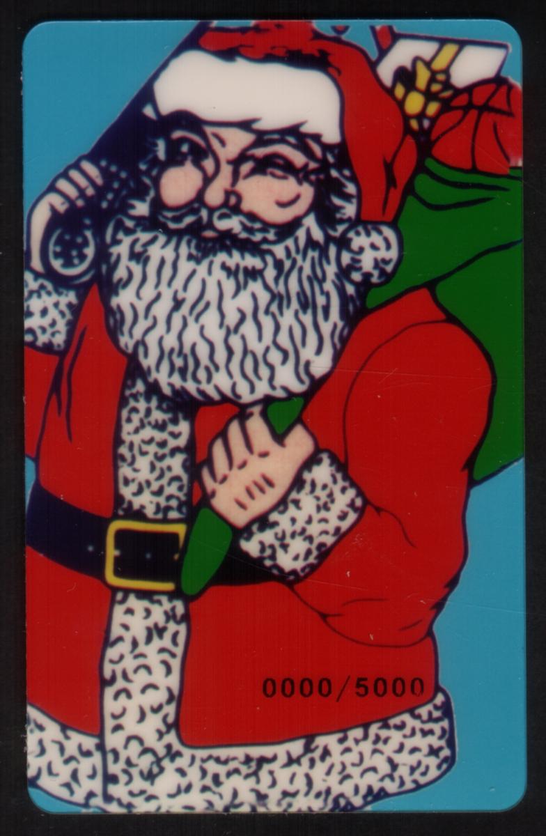 The card is numbered 0000/5000, indicating it is part of a limited edition run of 5,000 cards. The detailed and colorful artwork emphasizes the Christmas theme, highlighting Santa Claus as a central festive symbol. The image captures a cheerful holiday mood with the combination of Santa holding a bag of toys and engaging in a telephone call.