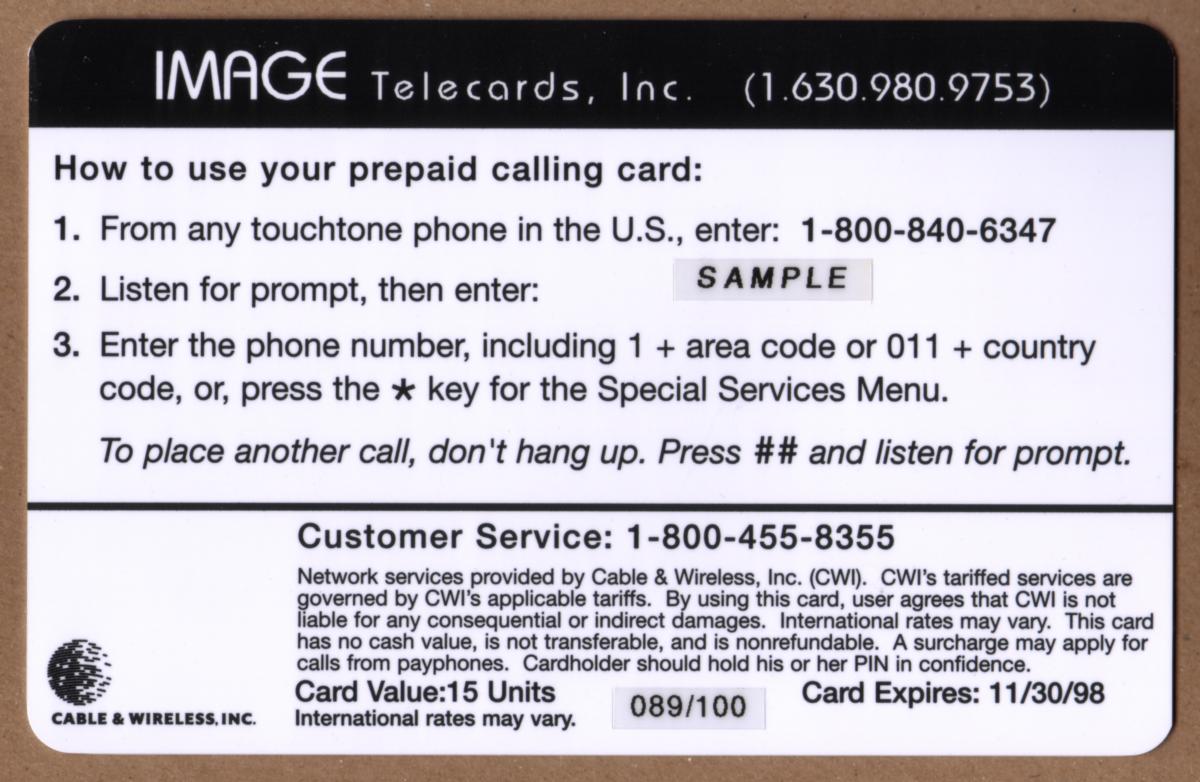 Since we have the world's largest inventory of USA phonecards for collectors, you will not necessarily receive the identical serial/batch/PIN number that we have scanned/pictured.