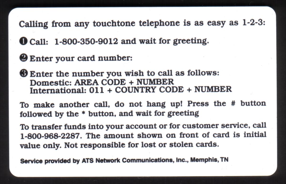 Since we have the world's largest inventory of USA phonecards for collectors, you will not necessarily receive the identical serial/batch/PIN number that we have scanned/pictured.