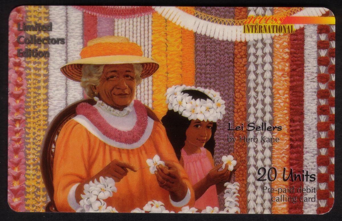 All cards prominently feature the Access International logo in the top right corner and include the artist's name, Herb Kane, next to each artwork title. The set showcases artistic, cultural, and historical aspects of Hawaii through vibrant paintings celebrating Hawaiian heritage.