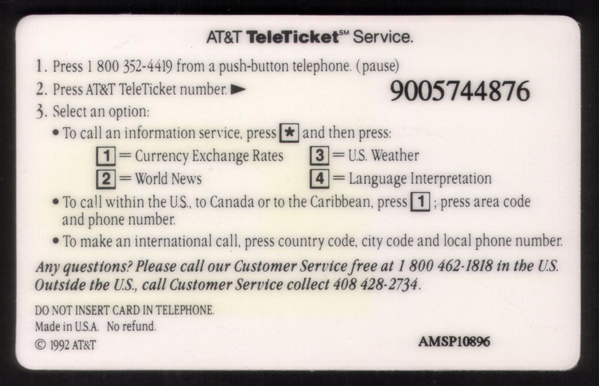 Since we have the world's largest inventory of USA phonecards for collectors, you will not necessarily receive the identical serial/batch/PIN number that we have scanned/pictured.