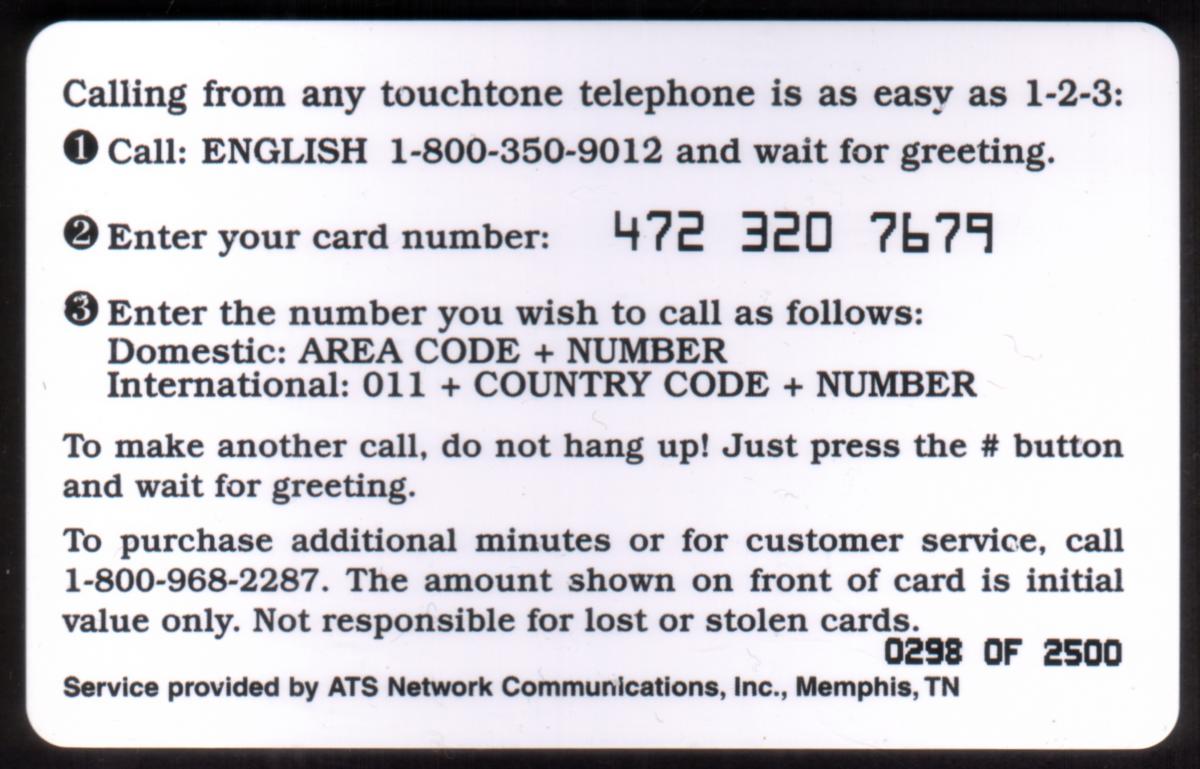 Since we have the world's largest inventory of USA phonecards for collectors, you will not necessarily receive the identical serial/batch/PIN number that we have scanned/pictured.
