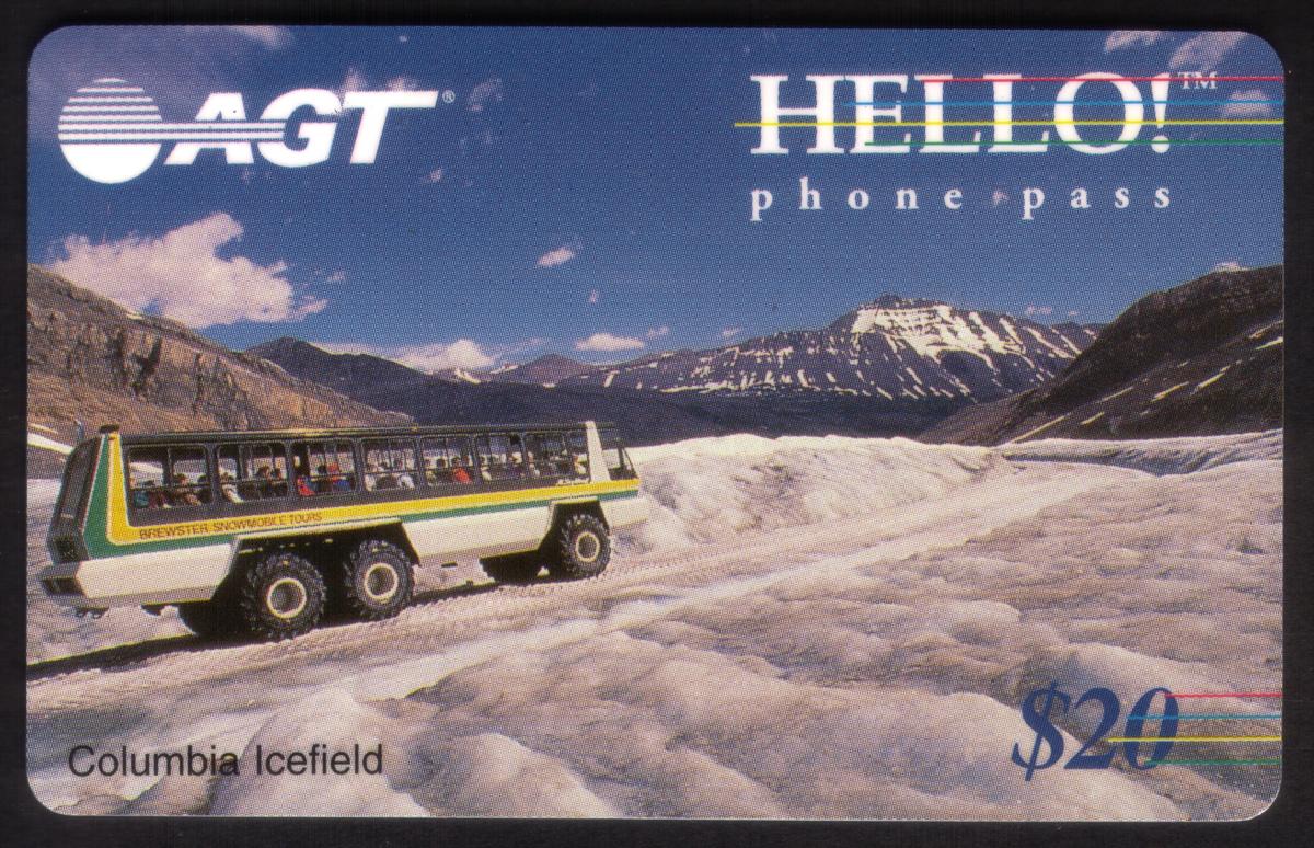 Also visible are logos and text identifying the issuer as AGT Alberta, relating the card directly to Alberta’s telecommunications provider. The card’s design uses blue and white tones consistent with the cold, icy theme, and the word “Canada” is clearly printed, reinforcing the location. The card remains sealed, suggesting it is unused and preserved in mint condition.