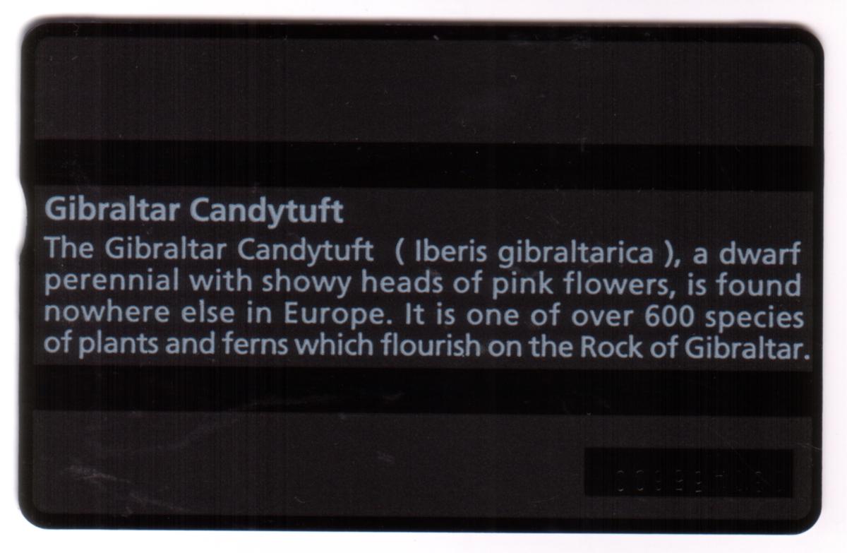 The layout and print quality emphasize clarity and color accuracy, suitable for collectors interested in botanic themes or Gibraltar-themed phone cards issued by NYNEX Communications. These cards highlight the floral emblem of Gibraltar, combining nature with telecommunication utility.