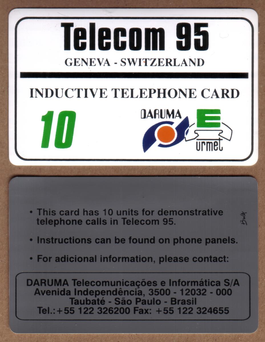 F90N, magnetic, stored value, urmet, telecom 1995 geneva, telecom 95 geneva, show card, daruma, brasil, brazil, Brazil