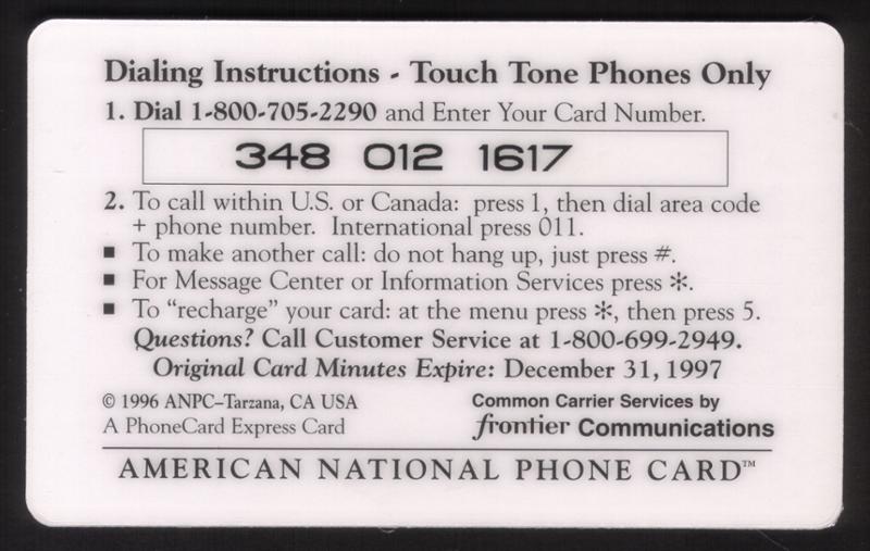 21219 ANP 9 800 10u 'The Guardian Angel Phone Card' (Prototype Card I)