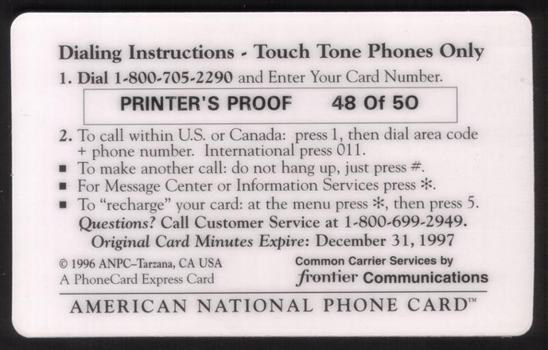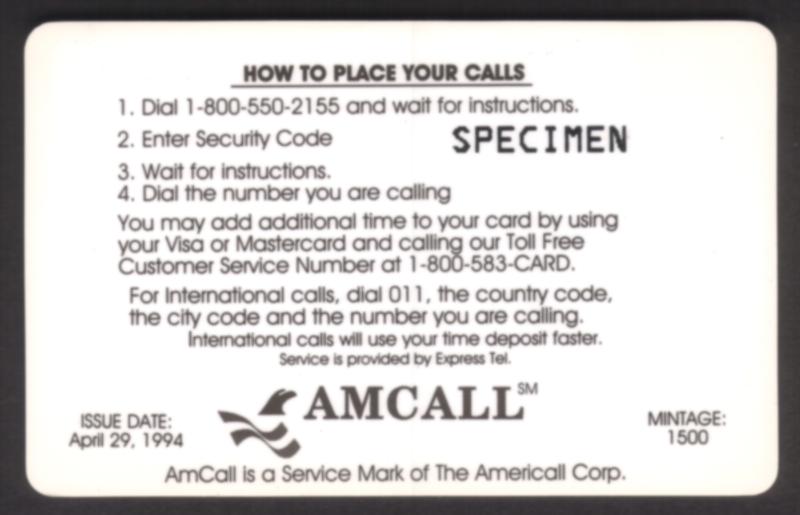 21041 ACI N/A Unknown $50. National Check Cashing Discount Phone Card SPECIMEN