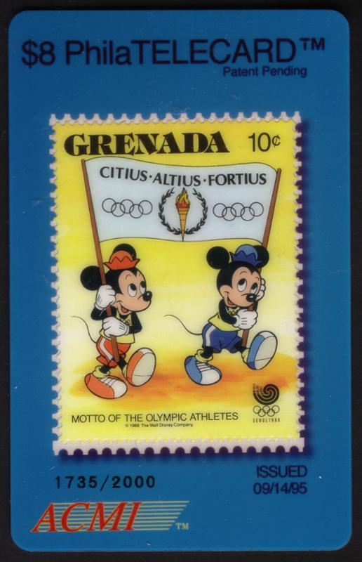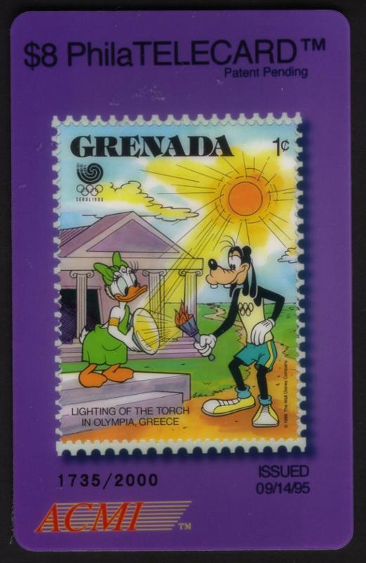 22941 ACI 300S-305S Unknown $8. Grenada DISNEY Postage Stamps. PhilaTelecard Set of 6 SPECIMEN $29.50