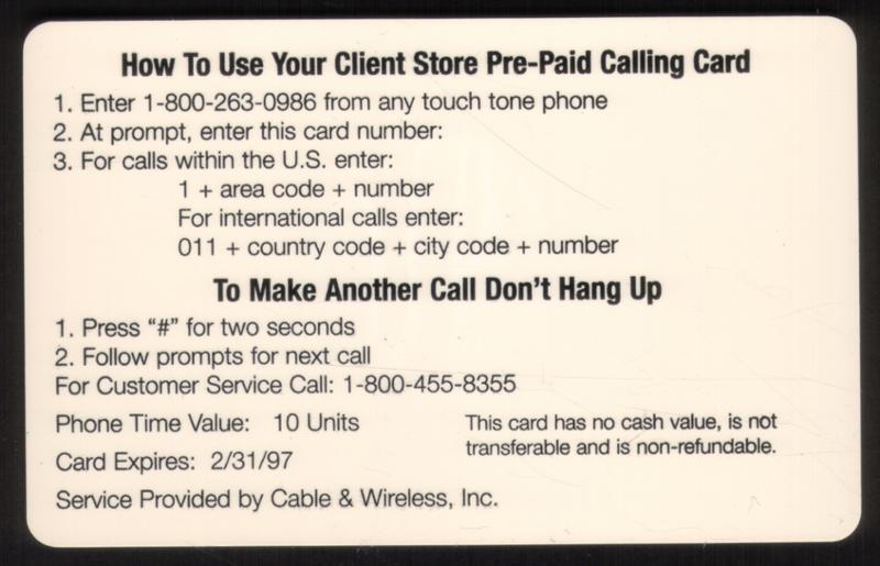 24667 AVX Pr648 Unknown Phone Card Collectors Club of America (Giordano Art Ltd NYC) SPECIMEN