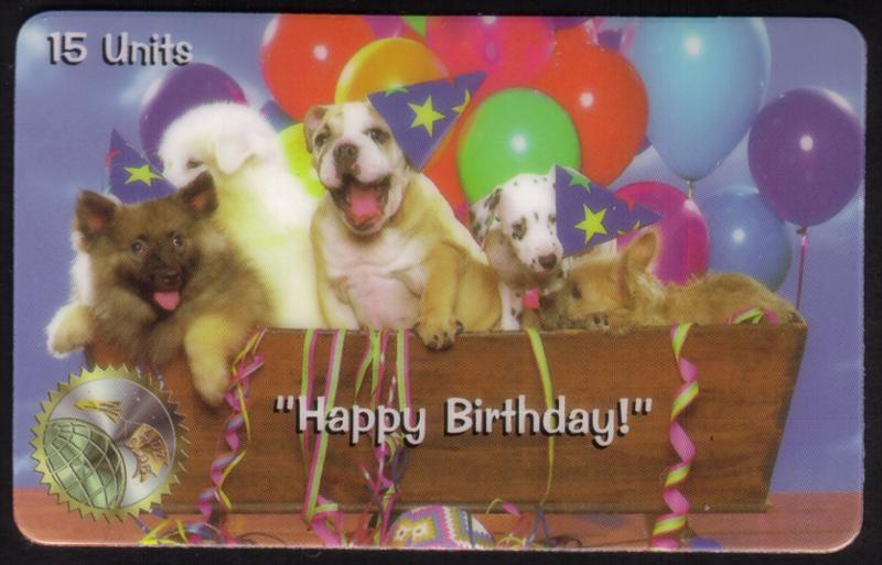 15299 DES 491S 132 15u Dogs With Party Hats & Balloons 'Happy Birthday' (Photo) SPECIMEN