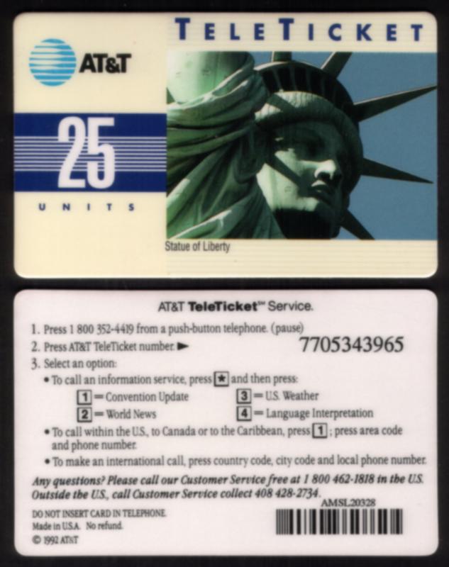 26175 ATT 9a Unknown 50u Statue of Liberty (Group 2 = AMSL#####/Barcode) English