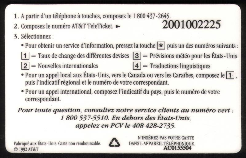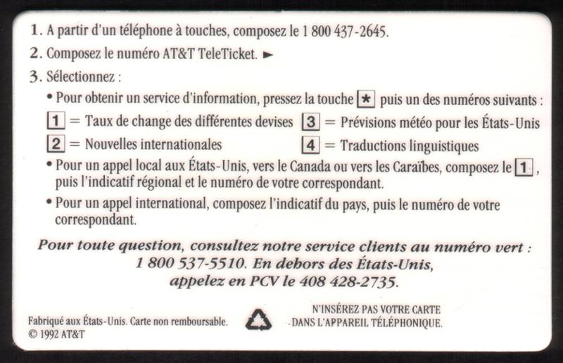 19826 ATT 13c Unknown 10u Statue of Liberty (Group 3 = 'FR' Over Barcode) French