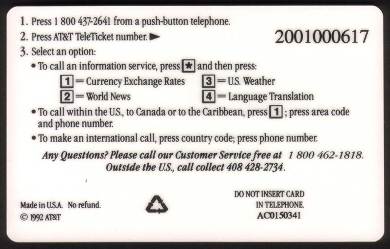11383 ATT 15a Unknown 50u Statue of Liberty (Group 3 = 'EN') English