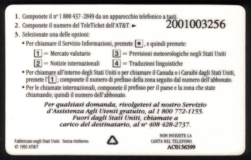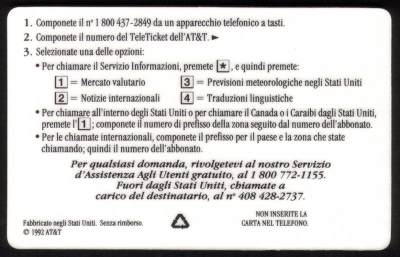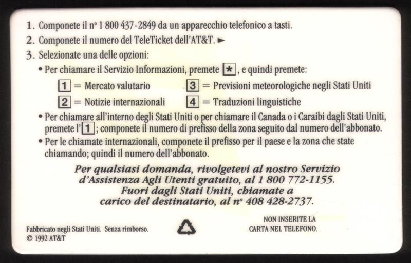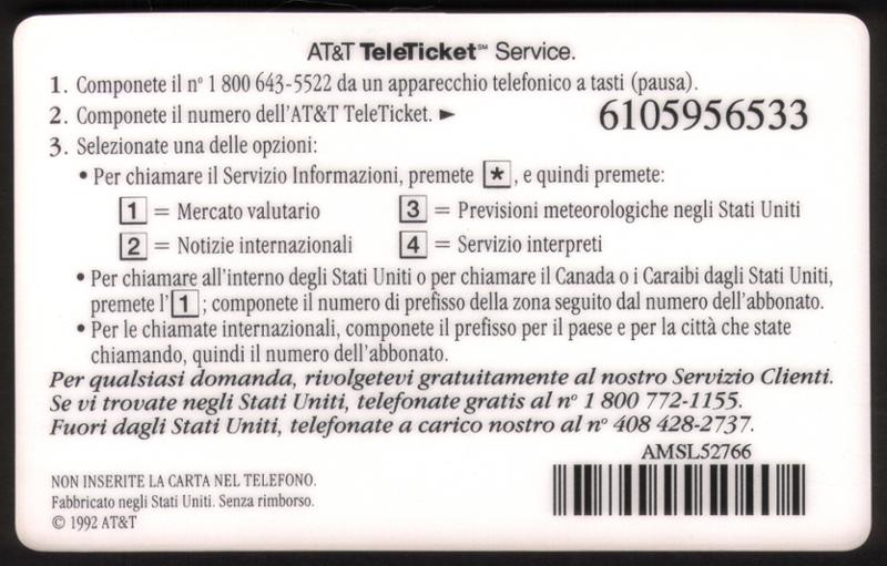 26624 ATT 9eU Unknown 50u Statue of Liberty (Group 2 = AMSL#####/Barcode) Italian USED $325.00