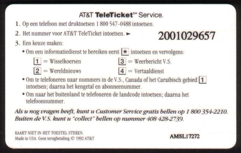 26212 ATT 9b Unknown 50u Statue of Liberty (Group 2 = AMSL#####/Barcode) Dutch