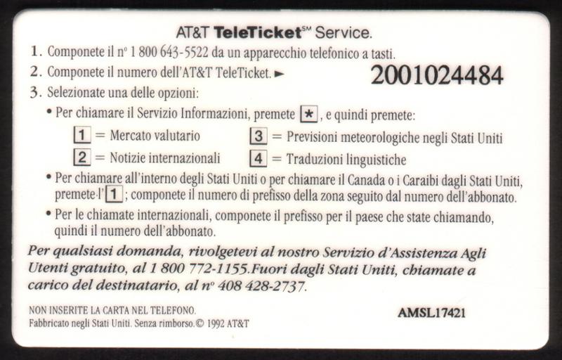 26213 ATT 9e Unknown 50u Statue of Liberty (Group 2 = AMSL#####/Barcode) Italian