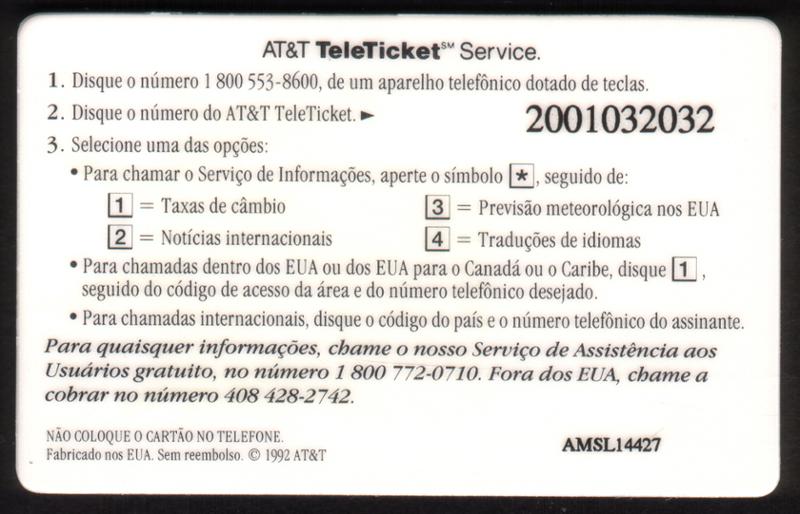26216 ATT 7h Unknown 10u Statue of Liberty (Group 2 = 'AMSL#####' Over Barcode) Portuguese