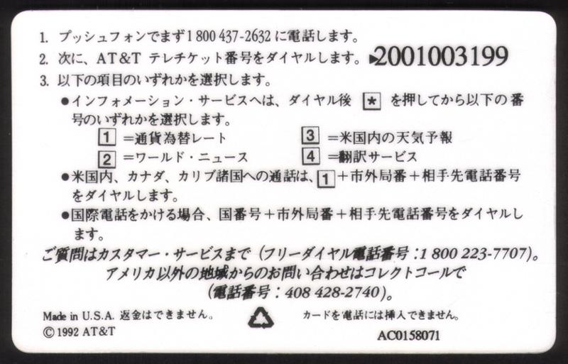 11047 ATT 13f Unknown 10u Statue of Liberty (Group 3) Japanese (No Envelope)