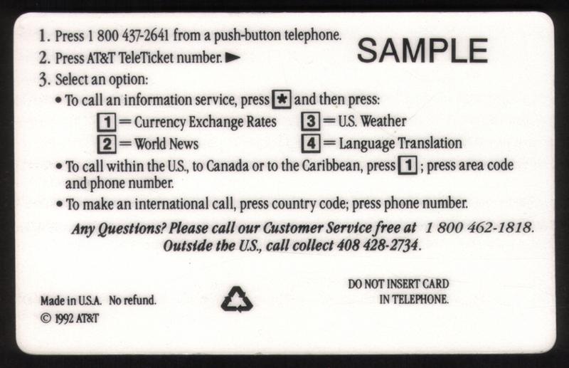 11067 ATT 16aS Unknown 10u Statue of Liberty 'SAMPLE' (English)