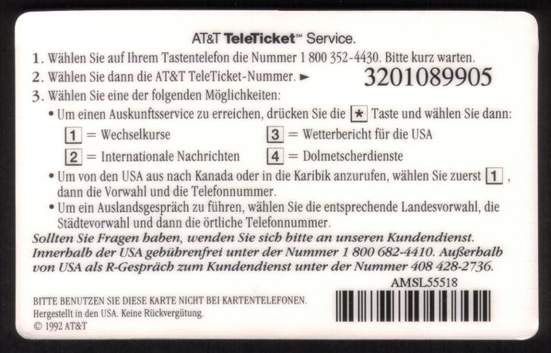 26494 ATT 4d Unknown 10u Statue of Liberty (Group 1 = 'AMSL#####') NO Barcode. German